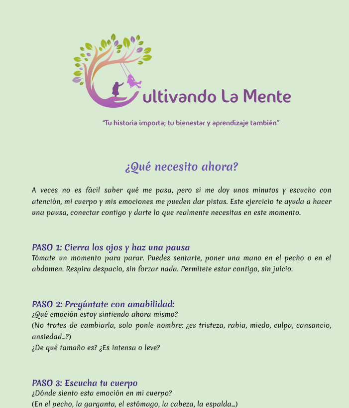 Cada ejercicio o guía nace del deseo de acercarte herramientas que te ayuden a regularte, comprenderte y crecer desde la calma
